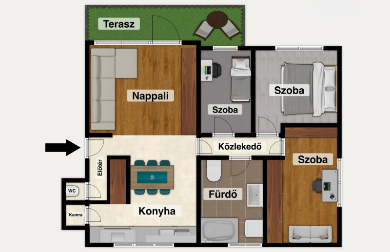 Dél-nyugati fekvés – egész nap világos, napfényes