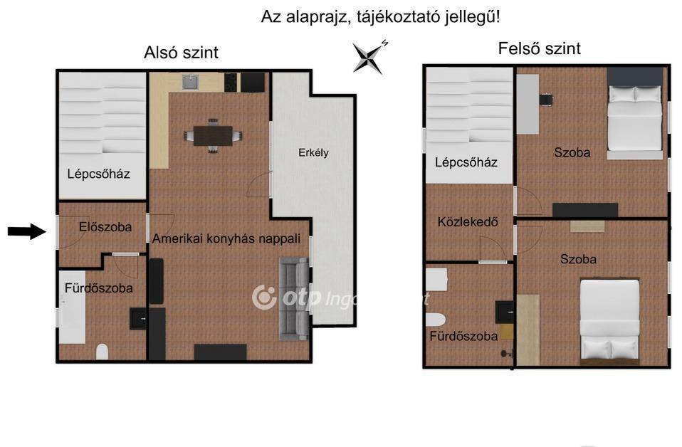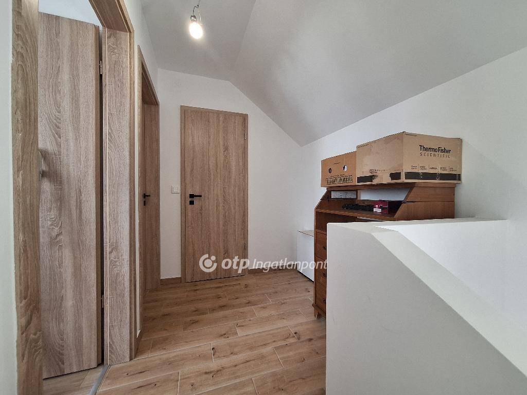 Azonban, könnyedén négyszobássá is alakítható, a konyha leválasztásával, és mivel mindkét szinten van fürdőszoba, többgyermekes családok számára is kényelmes, könnyen elkülöníthető életteret kínál.