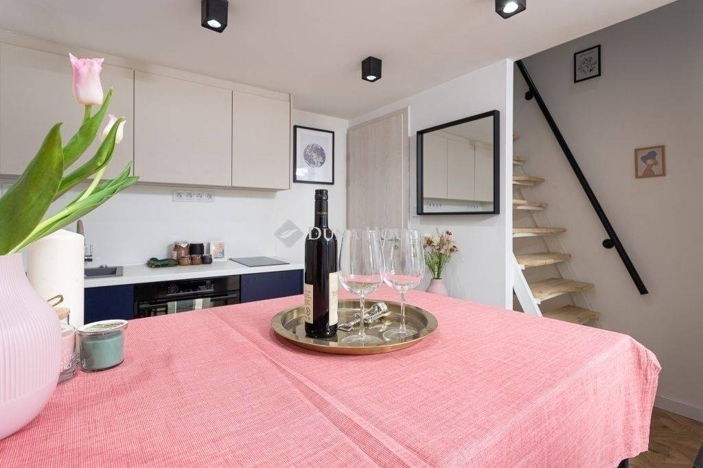 Budapest belvárosában, az Eötvös utca egyik legrendezettebb házában, felújított, légkondicionált, bútorozott, gépesített lakás eladó! 2025-ben felújított, lakberendező által tervezett, belső két szintes, 35 négyzetméteres, költségmentes, azonnal költözhető lakás keresi új gazdáját. Amennyiben olyan lakást keres, ahová csak a személyes holmijait kell magával hoznia, amennyiben fontos a jó tömegközlekedés, de egyben a csendes társasházi környezet, a biztonság: nem kell tovább keresnie. Rugalmasan (bármikor) megtekinthető, a képeken a kész lakás látható, per és tehermentes. Megtekintéssel és hasonló belvárosi lakásokkal kapcsolatban keressen telefonon.
