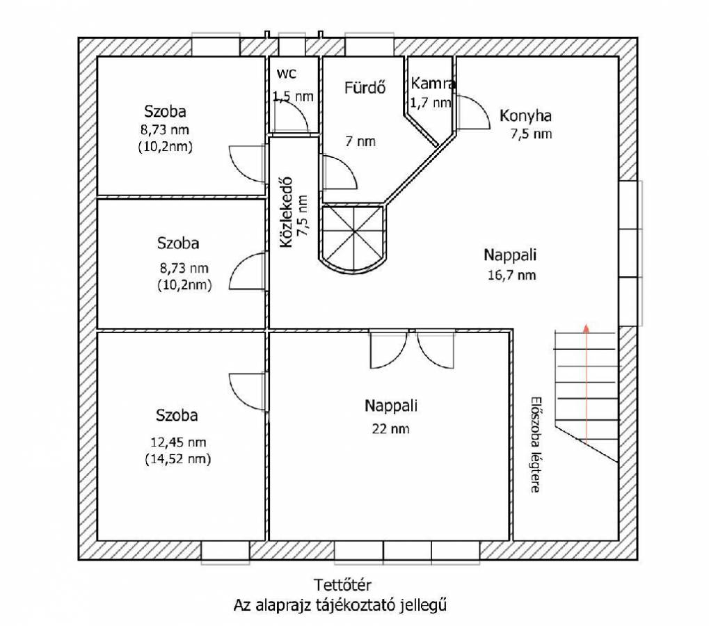 A tetőtérben további három szoba nyújt helyet, így az ingatlan összesen akár három család számára is ideális, vagy kényelmes otthon és munkahely egyben.