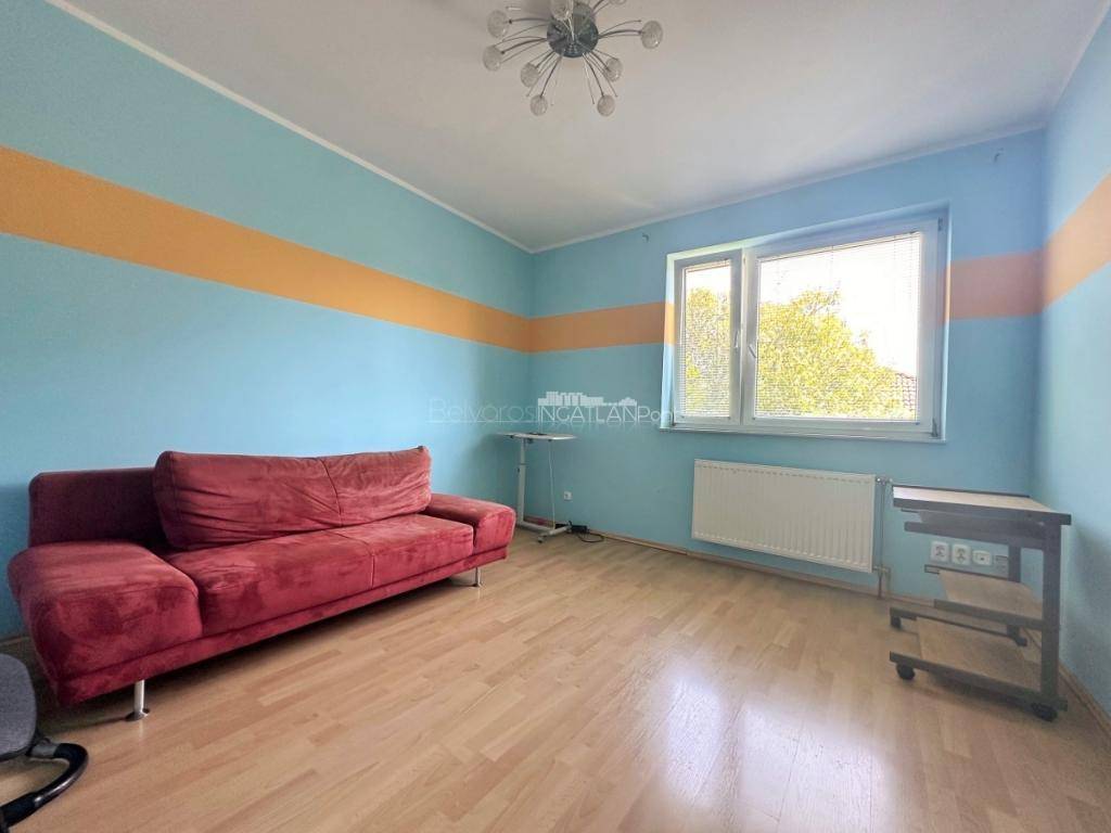 A felső, 95 m2-es tetőtéri szint nappali, 2 szoba, és 1 fürdőszobával rendelkezik.