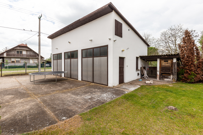 •A harmadik épületben egy háromállásos garázst találunk, két szerelőaknával. Víz gáz, villany elérhető ebben az épületben, így akár műhelyként is használható. Alapterülete: 75,6m2