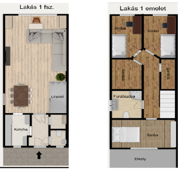•Földszint: tágas nappali étkezővel, konyha, kamra, mosdó