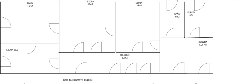 4 szoba, konyha, fürdő-WC spájz , folyosó található benne.