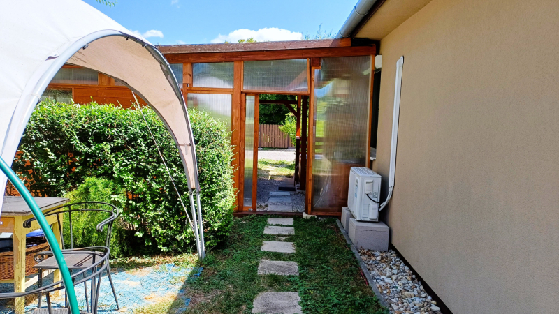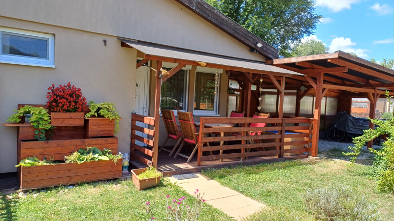 - Színvonalasan kivitelezett famunkával készült megnagyobbított fedett terasz, autó-, kerékpár beálló, télikert, kerti tároló.