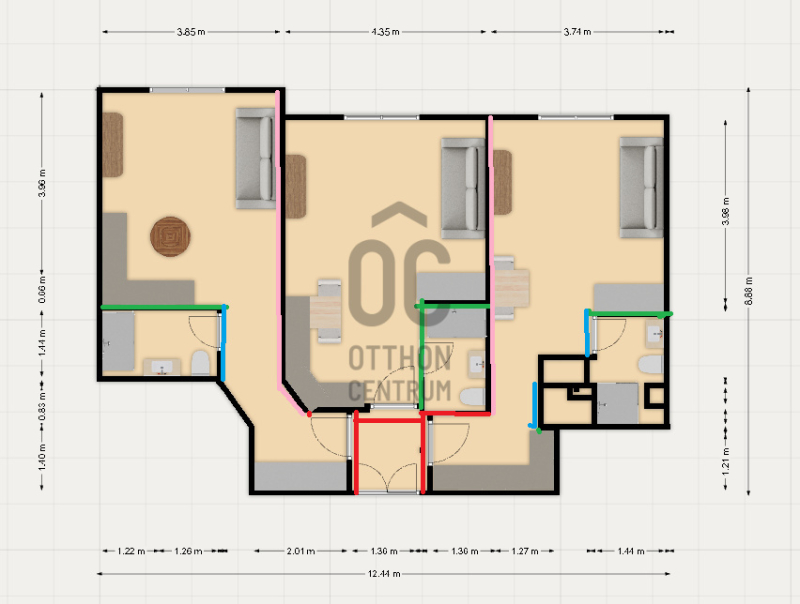- Mindegyik ingatlanban saját konyha és fürdőszoba került kialakításra