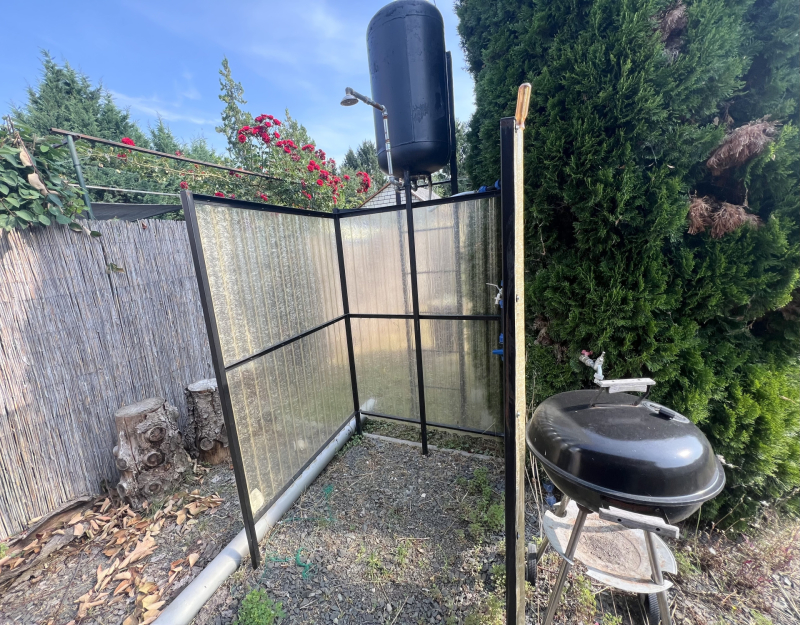 Fürödni az udvaron található épített zuhanyzóban lehet, valamint az udvaron található egy fémház tároló is.