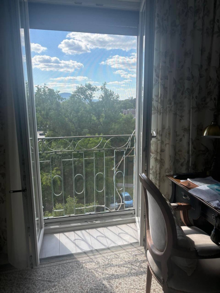 Ablakai elénk tárják a budai hegyek, a Duna és a Népsziget lélegzetelállító panorámáját, miközben közvetlenül a ház előtt hatalmas, zöld, ősfás park terül el.