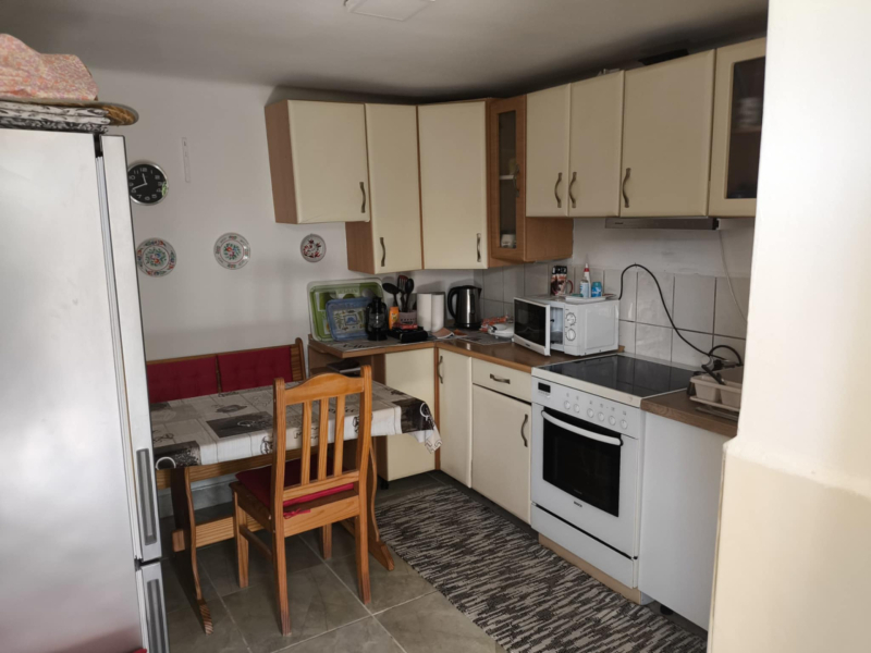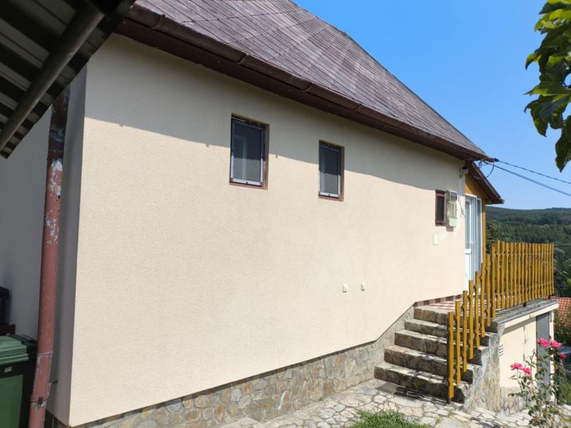 A felső emeleten egy szép nappali, és 2 kis szoba található fürdőszobával, külön wc-vel. A berendezés nagy része is benne van az árban, így azonnal költözhető.