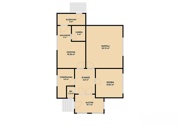 ELRENDEZÉS: nappali, szoba, előtér, fürdőszoba, mellékhelyiség, kamra, előszoba, pince.