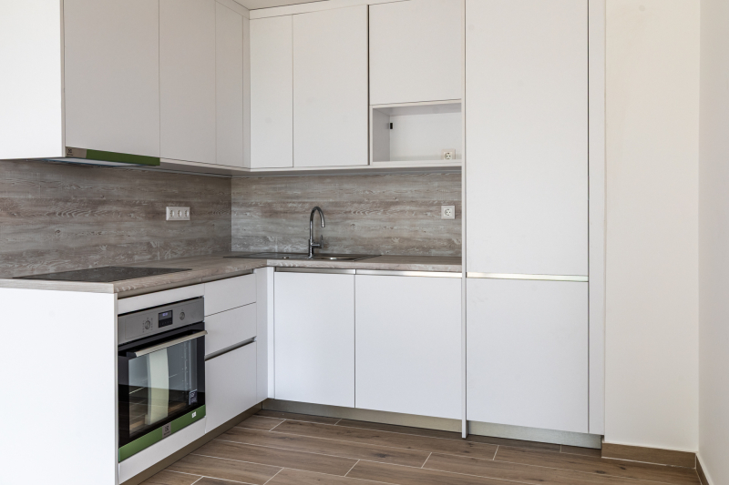 A gépesített konyha elegáns és praktikus: sütő, főzőlap, mosogatógép, hűtő és elszívó is a része. A háromrétegű alumínium nyílászárók és a nappali tolóajtaja beengedik a fényt, a beépített árnyékolás és az okosotthon-rendszer pedig modern kényelmet ad.