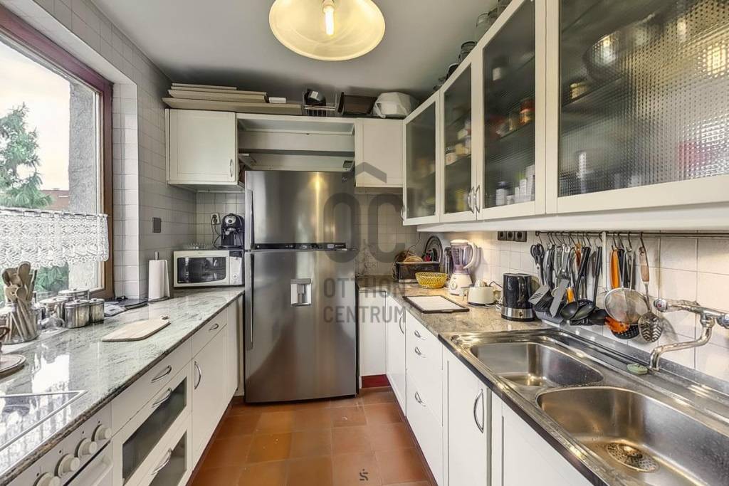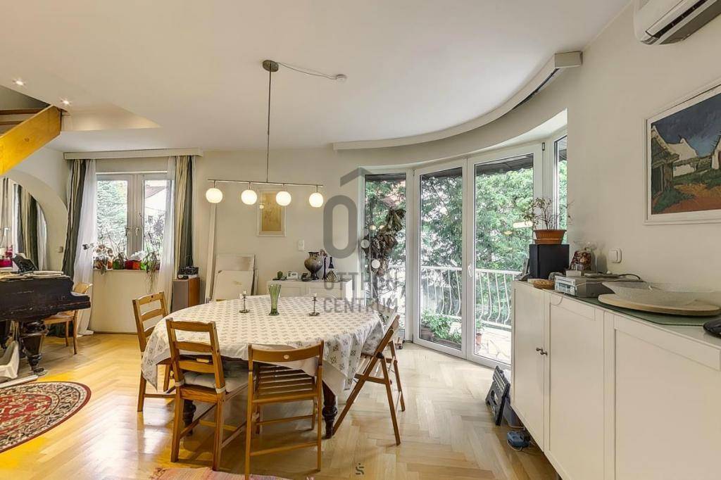 II. kerületben Törökvészen, 1989-ben épült, gondozott kertben álló, folyamatosan karbantartott, jó állapotú, 4 lakásos ház első, legfelső emeletén, nappali + 4 hálószobás, beköltözhető állapotú, az elmúlt években többször felújított, átépített, de esztétikai csinosítást igénylő, több erkélyes, napos, világos, tágas lakás,garázzsal, 1 felszíni parkolóhellyel és nagy tárolóval eladó. A közelben található a Móricz Zsigmond Gimnázium, a Szabó Lőrinc Kéttannyelvű Általános Iskola és Gimnázium, több óvoda és a Rózsakert bevásárlóközpont. Gépkocsival 10-15 perc alatt megközelíthető a Margit híd és az Árpád híd, a 91-es, 291-es buszmegállói három perc sétával elérhető.