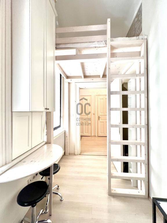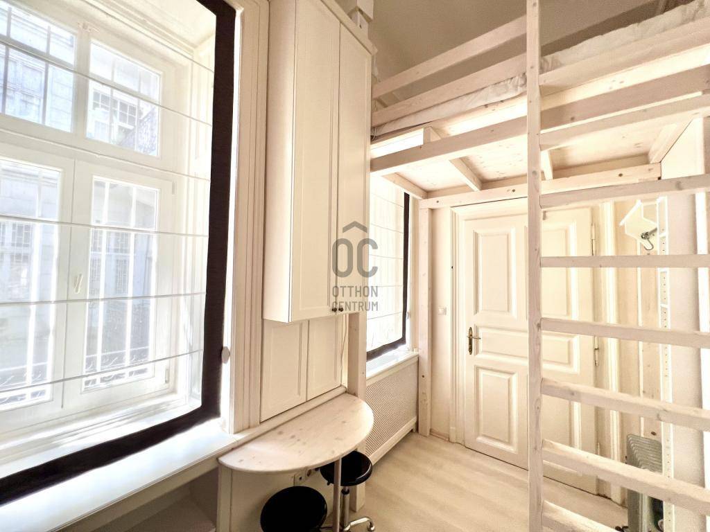 Az apartman azonnal költözhető, Budapest egyik legkeresettebb kerületében, az V. kerület Bihari Jánor utcájában található, és kiváló elosztással rendelkezik. A lakás teljeskörű felújításon esett át 2015-ben, amely magában foglalta az amerikai konyhás nappali kialakítását, a padló felcsiszolását, az ablak cseréket, az ajtó felújításokat, a fűtéskorszerűsítést, a plusz kamra/főzőfülke elhelyezését, és a galériás ágy kialakítását is. A lakás a képek elkészülése óta már egy tisztasági festésen is túl van. Az impozáns házban elhelyezkedő polgári lakás elegáns és letisztult kialakítású,nagy belmagassággal és tökéletes fényviszonyokkal rendelkezik.