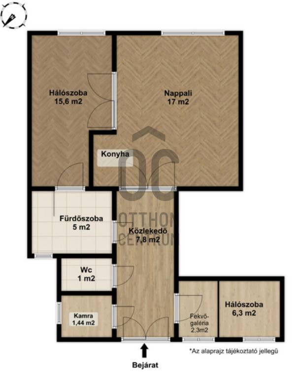 Nappali+konyha, hálószoba, hálószoba+alvó galéria, fürdőszoba, wc, kamra főzőegységgel, előszoba