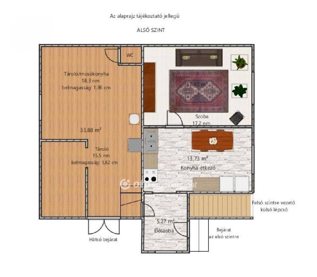 Budapest XXII. kerületében, Budafokkedvelt részén, csendes, nyugodt családi házas övezetben eladó egy 541 nm-es telken lévő, két szintes, 101 nm-es (+ egy 33,8 nm-es tároló/mosókonyha) önálló, tégla építésű, szigetelt családi ház, különálló aknás garázzsal, pincével, gondozott kerttel. A két szinten összesen 4 szoba, 2 étkező, 1 konyha, 1 fürdőszoba wc-vel és, egy különálló wc, kamra és tároló található. Az alsó szinten egy szoba, egy konyha/étkező, egy előszoba, illetve a 33,8 nm-es tároló/mosókonyha, wc-vel, amelynek a belmagassága 1,86 cm. Külső, fedett feljáróval rendelkezik, a felső szinten egy hangulatos,szintén fedett teraszról belépve egy kényelmes hall/étkezőbe érkezünk, innen nyílik egy konyha kamrával (amely most inkább vendégszobaként funkcionál, igény szerint alakítható), a fürdőszoba wc-vel (a hálószobából is közvetlen bejárattal) illetve egy nagy nappali és abból egy hálószoba. Ez a kiváló elhelyezkedésű ház ideális választás lehet nagyobb gyermekes családoknak, hiszen akár két generációnak is kényelmes otthont nyújt. Élvezze a békés, zöld környezetet és a jó közlekedést! További kérdés, megtekintés estetén forduljon hozzám bizalommal a hét bármely napján!