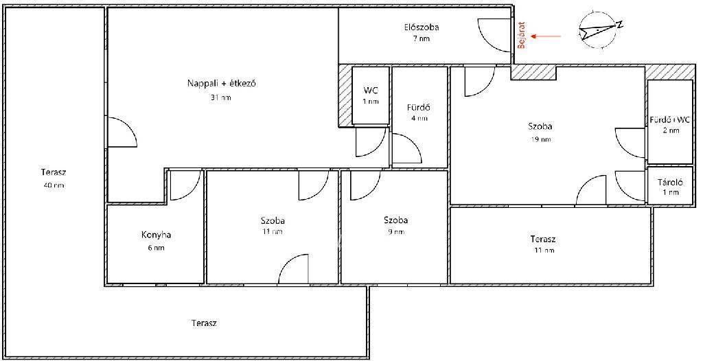 - 91 nm lakótér + 51 nm terasz (egy 40 nm-es és egy 11 nm-es terasz)