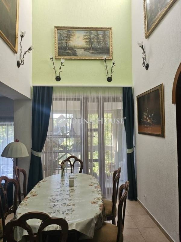 Eladó több szintes családi ház a XVI. kerület RózsadombjánEz a tágas, világos ingatlan kitűnő választás családoknak, de vállalkozás céljára is ideális.A ház nagyon jól megtervezett, igényes berendezéssel.Földszint:Több bejáratnak köszönhetően alkalmas iroda, rendelő vagy bármilyen tevékenység kialakítására.Tágas nappali kandallóval, amelyből a teraszra és a kertbe juthatunk.Étkező kupolás megoldással, rengeteg természetes fény.Külön konyha, amely igény esetén egybenyitható az étkezővel.Kamra a tároláshoz.Télikert, amely ideális virágok számára vagy kellemes pihenőhelyként.Garázs, amelyből közvetlenül a lakásba lehet jutni, valamint kerti beállási lehetőség több autó számára is.Alagsor:Több helyiség, fürdő és WC.Alkalmas edzőteremnek, masszázs- vagy szépségszalonnak, tornateremnek.Lehetőség szolárium vagy szauna kialakítására.Mosókonyha és konyharész.Minden helyiség ablakos, világos.Emelet:Négy tágas, világos szoba.Külön fürdő és WC.Kert:Körbejárható ház, tágas, parkosított kis kerti tóval.Külön 20 m²-es tárolóház.Elhelyezkedés:Kiváló lokáció, pár perc sétára buszmegálló az Örs vezér tere felé.Számos bolt és üzlet a Rákosi út mentén.Sétálva eljutunk a Szilas-patakhoz kitűnő lehetőséget ad kellemes sétára, valamint biciklizési lehetőség közelben a Hermina Bringa Park.Ingatlan ára teljes berendezésre is vonatkozik ide csak a bőröndöket kell hozni és belakni ezt az impozáns épületet.Független Hiteltanácsadás,Hitel, Babaváró, Csok ingyenes ügyintézése.Megtekintés , bármely kérdés esetén állok rendelkezésre!