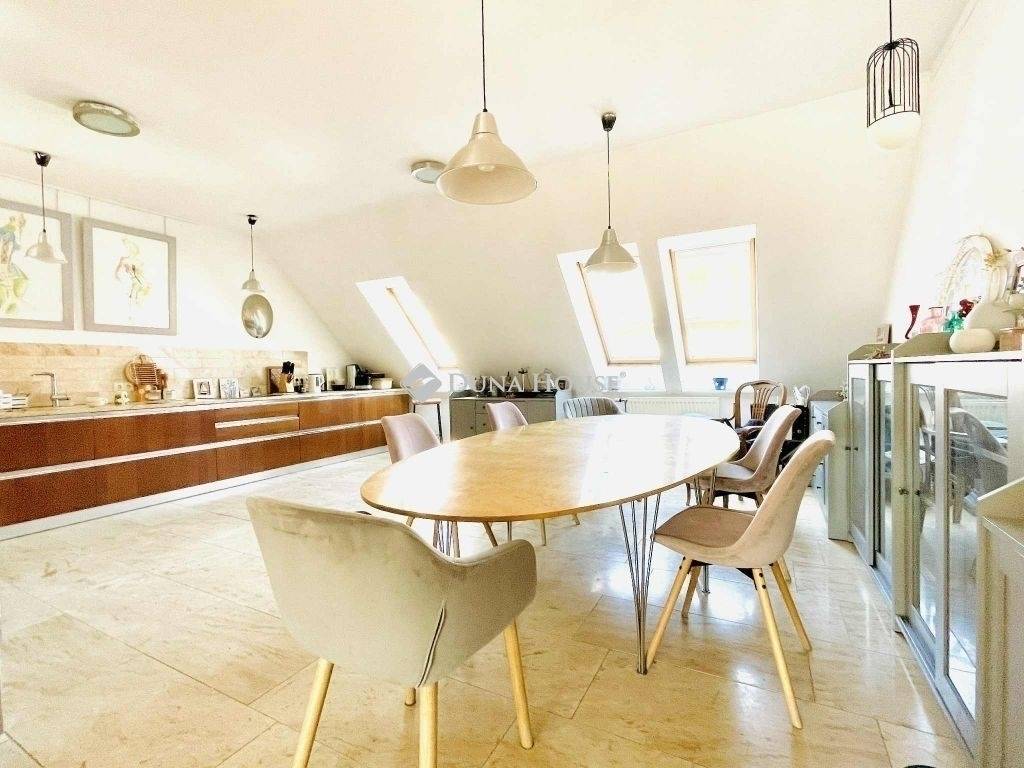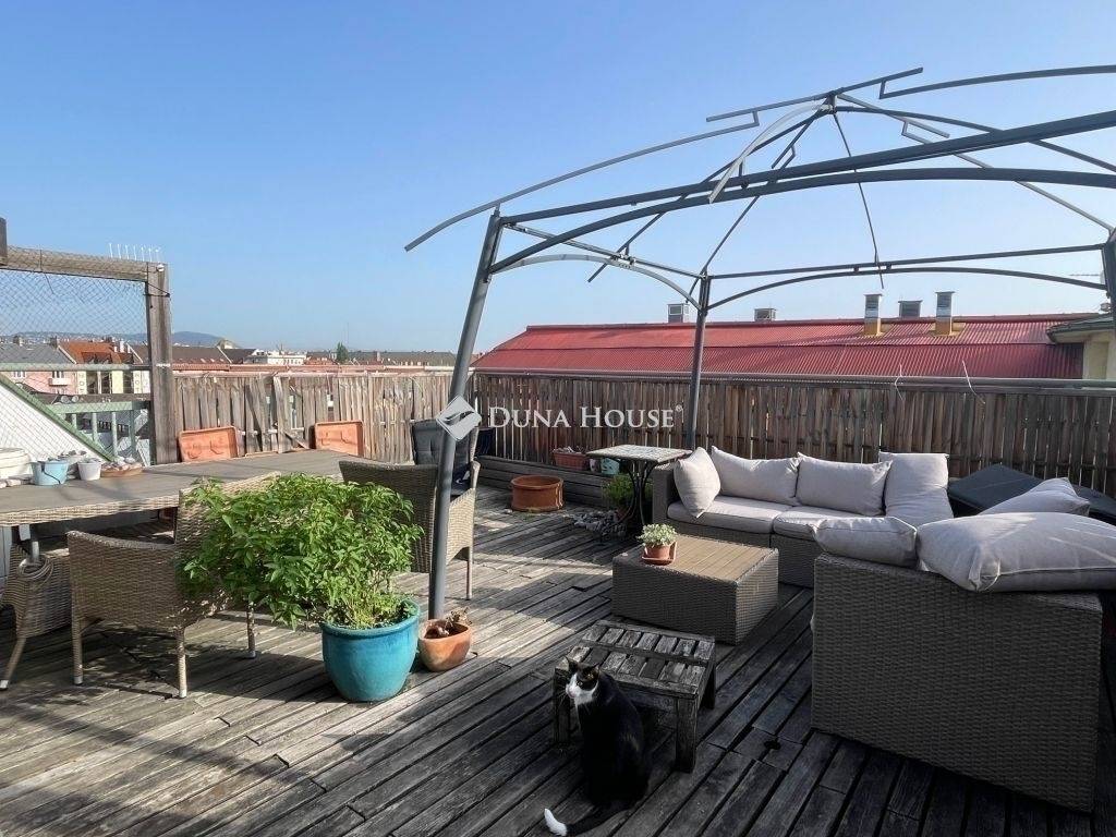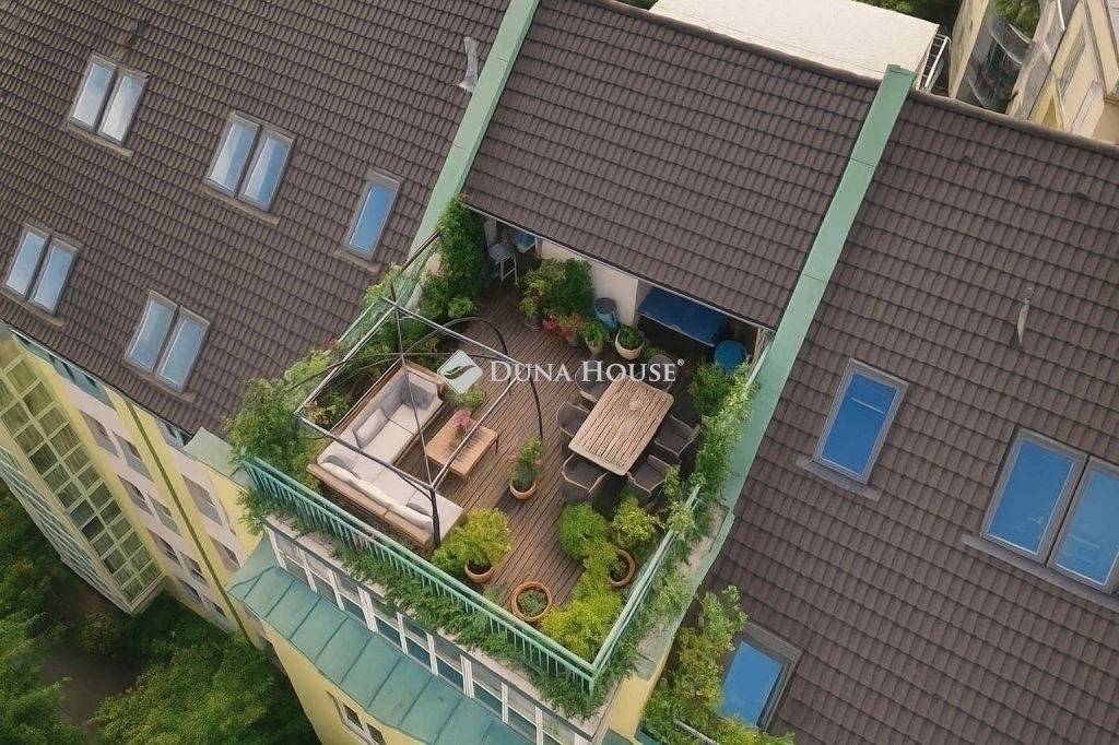 Budai kilátás, pesti élet, panorámás tetőterasz a város felett! 2000-es években épült hatemeletes társasházban található ez a belső kétszintes, napfényes lakás. Az ingatlan különlegessége a tetőterasznak köszönhető egyedülálló panoráma. A lenyűgöző kilátás mellett egy tágas és világos nappali biztosítja a családi és baráti összejövetelekhez a tökéletes helyszínt. Az amerikai konyhás nappaliból egy kényelmes és dizájnos lépcső vezett a felső szintre, ahol két hálószoba, gardróbbal és fürdővel várja az új tulajdonost. A tetőterasz nem csak pihenésre, vendégek fogadására, de akár kénylemes otthoni munkára is alkamas.