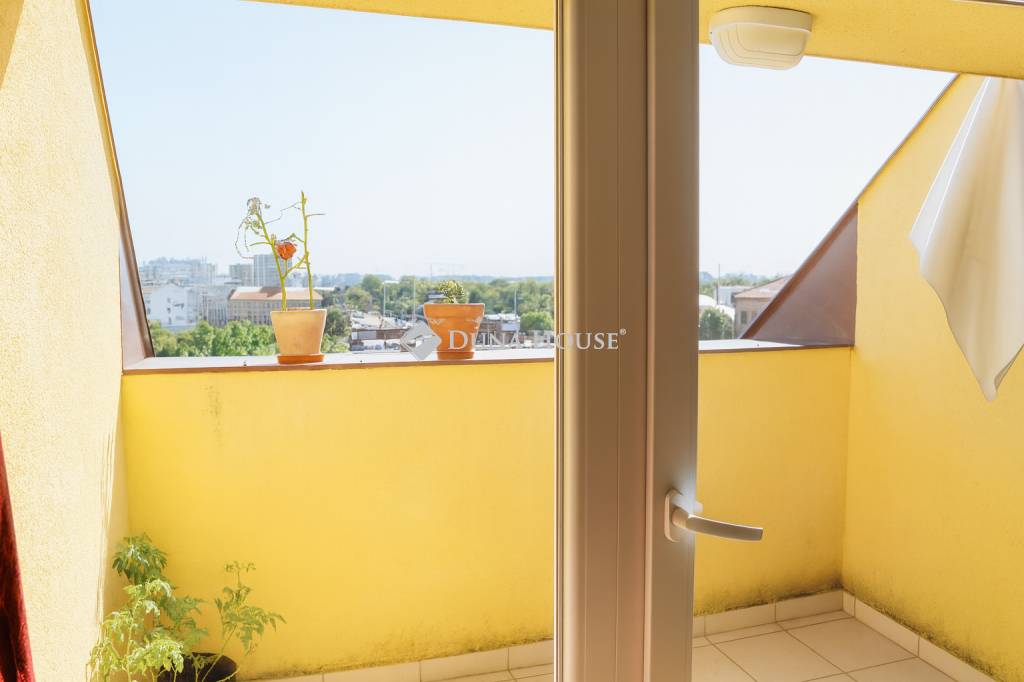 Csendes utcára néző, erkélyes, zuglói lakás jó közlekedéssel!3 szoba63 (67) m282M- Erkély- Jól szellőző wc, fürdő- Tágas, fényes nappali- 2 légkondi- Gardrób, tároló a hálószobához- Lift, pince, jó állapotú társasházA tágas nappali a családi élet központja lehet ebben a tetőtéri lakásban, de home office munkaállomás vagy gyereksarok is könnyen kialakítható benne. A nappaliból nyílik egy 3,8 nm-es napfényes erkély.Jó elosztású, két külön nyíló hálószoba biztosítja a privát szférát, a gardrób pedig tökéletes lehetőség a személyes holmik tárolására.A fürdő és a mellékhelyiség könnyen szellőztethető a lichthofnak köszönhetően. A tetőteret tíz éve építették, ekkor megújult a külső-belső homlokzat és modern lift került beszerelésre. Az ingatlanhoz pince is tartozik, az utcáról egy csendes belső udvarra érkezünk és a ház környékén könnyen lehet parkolóhelyet találni.A lakás a ferdesíkokkal és az erkéllyel együtt 6-7 négyzetméterrel nagyobb lakóteret biztosít a hivatalos alapterülethez képest. Az ingatlan négyzetméter ára és mérete megfelel az 3%-os hitelkonstrukciónak. Személyes megtekintés és kérdések esetén keressenek bizalommal!A hirdetésben szereplő FIX 3%-os lakáshitel részét képező támogatásokat Magyarország Kormánya nyújtja.