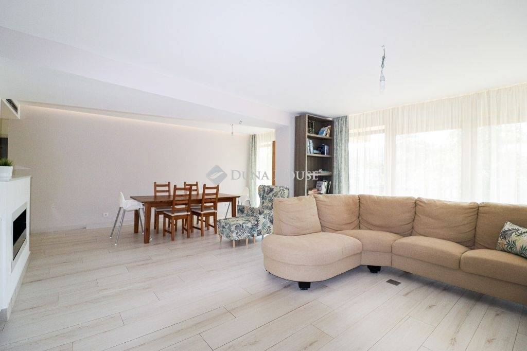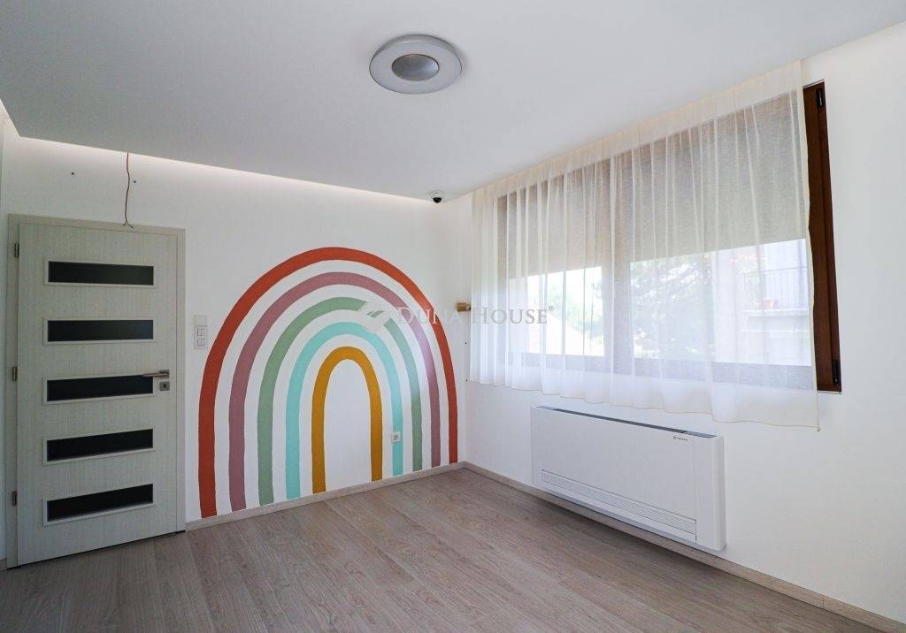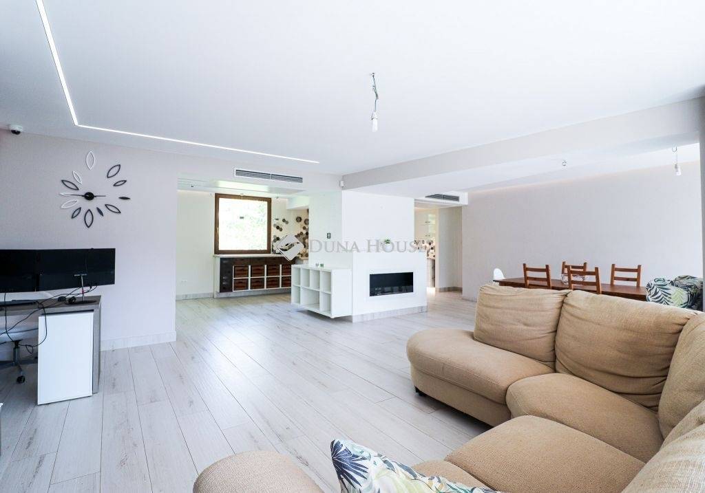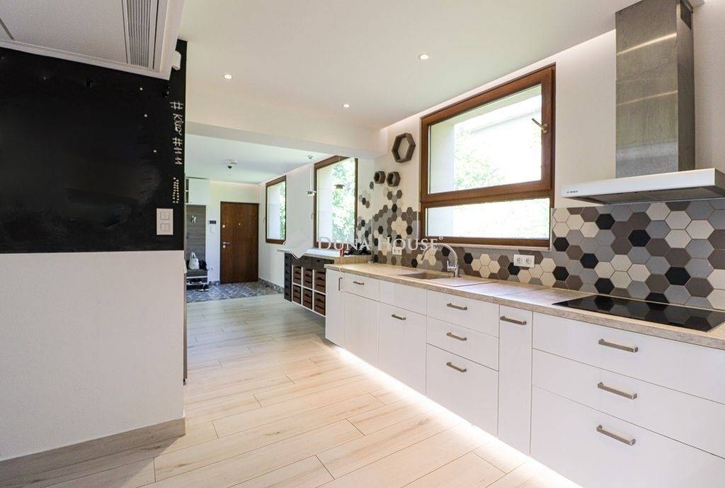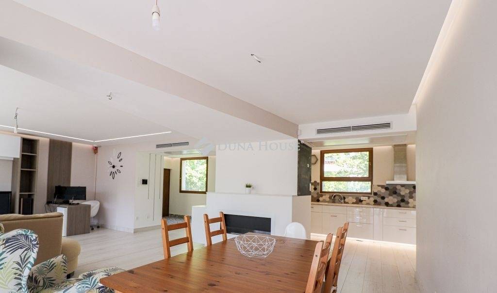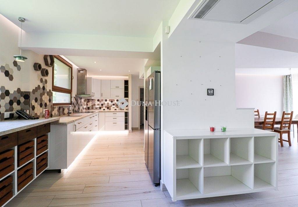 Budagyöngye vonzáskörzetében, igényesen felújított, energiatakarékos okosotthon!II. kerület Szépilona városrészen, kétlakásos társasház emeleti zárószintjén kínálunk megvételre egy 136.87 négyzetméter lakóterületű +29.87 nm lodzsa + 72.96 négyzetméter területű alagsori garázs és tárolót. A tulajdoni lapon 162 négyzetméter szerepel.Az ingatlanhoz saját 504 négyzetméter területű kert tartozik.A két lakás minden tekintetben egymástól teljesen szeparált, a kert is elválasztott, az ingatlanok külön kapun közelíthetőek meg.Az épület alapjait a hatvanas években rakták le, ekkor egy földszintes házat alakítottak ki, majd a nyolcvanas években került ráépítésre egy emelet, mely ingatlan a jelenlegi hirdetés tárgyát képezi.Az ingatlan két részletben kapott teljes felújítást:1. 2015- ben - a 40 cm-es külső falra 10 cm-es grafitos EPS szigetelés, a lapostetőre bitumenes lemezfedés került, valamint itt kapott helyet a 6KW-os (tovább bővíthető) napelem. - az alagsori rész is teljes felújításra került, 2 állásos garázs, tárolók, és fürdő kapott helyet.2. 2021- ben - teljeskörűen felújítottot gépészet, padlófűtés + fan-coil hűtés-fűtés Mitsubishi hőszivattyúval, H tarifával, 6kW napelem a tetőn Fronius inverterrel (10KW napelemre méretezve, szaldó engedéllyel, tároló csatlakoztatási lehetőséggel).- új 3 rétegű nyílászárók kerültek beépítésre, elektromos redőnyökkel, szúnyoghálóval.- teljesen automatizált Loxone alapú okosotthon vezérlés, - központi porszívó- minőségi burkolatok, - kéménymentes kandalló, - rejtett, LED-es hangulatvilágítás, - egyedi beépített bútor,- teljesen felszerelt, gépesített konyha.A lakás elosztása:- nappali amerikai konyha és étkező 56,2 nm- gardrób 3.8 nm- közlekedő 8.17nm- 3 szoba 13.59, 13 és 12.85 nm- 2 fürdő 6.69, 3.63 nm- előtér 16.32 nm- 2 lodzsa 21,82 és 8.05 nmAz alagsor elosztása- alagsori fürdő 2.67 nm- 2 alagsori tároló 19.81 és 16.32 nm- garázs 34.16 nm 2 gépkocsi tárolásáraAz ingatlant kamera rendszer és riasztó védi.Fűtését padlófűtés + fan-coil hűtő-fűtő hőszivattyú rendszer biztosítja, így nyújt egyforma a hőmérsékletet évszaktól függetlenül alacsony fenntartási költség mellett.Az 504 négyzetméter területű sík kert rendezett, ősfás.A környék jó infrastruktúrával ellátott. tömegközlekedés, óvoda, iskola a közelben, valamint pár percre található a Budagyöngye bevásárlóközpont.Ha ez a kellemes hangulatú, praktikus elrendezésű, egyedi otthon felkeltette az érdeklődését, kérem keressen az elérhetőségeimen.