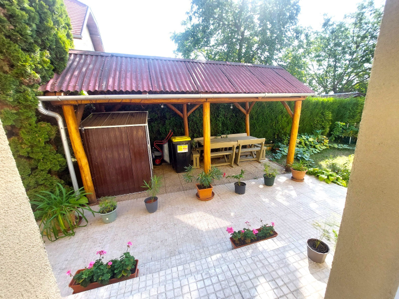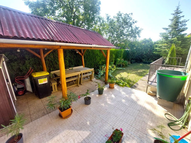 -200nm-es saját kert, fedett kerti kiülővel, tárolóval