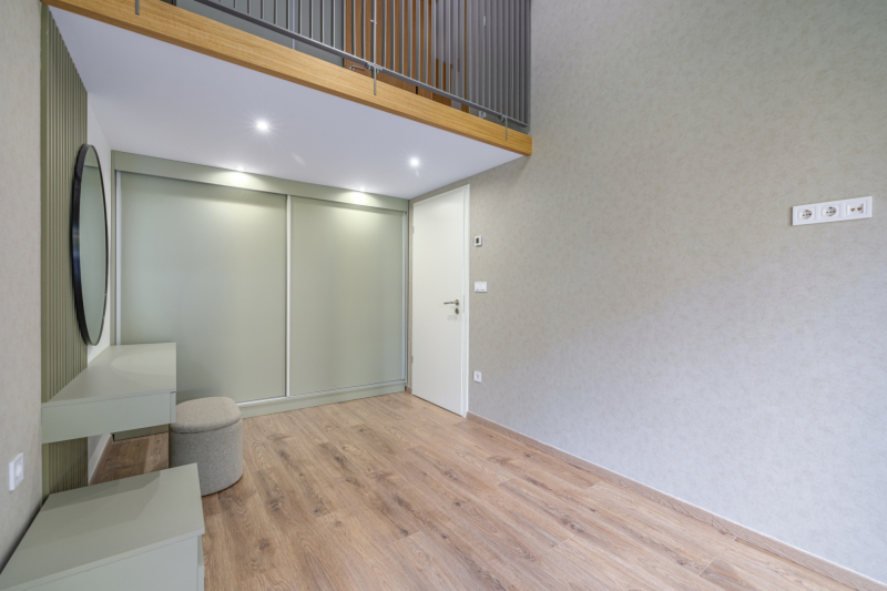 A 4,5 méteres belmagasság fényes, levegős életteret biztosít. A alapterülethez 16 m² teljes értékű galéria társul, ahol hálószoba és gardróbszoba is kialakításra került, beépített bútorokkal. Az amerikai konyhás nappali és a külön hálószoba ideális elrendezést nyújt pároknak, kis családoknak vagy akár befektetőknek is.