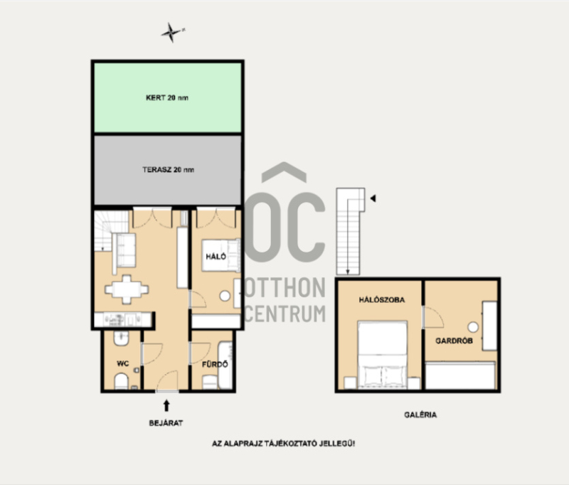 A külön fürdőszoba és wc tovább növeli a kényelmet, míg a hatalmas terasz és a saját kert tökéletes helyszínt adhat reggeli kávéhoz, nyári olvasáshoz vagy baráti grillezéshez.