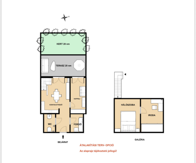 A lakás esetleges változtatásához átalakítási terv a képek között található amely bemutatja a térben rejlő lehetőségeket és inspirációt nyújt a leendő tulajdonosnak.