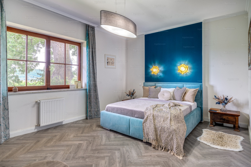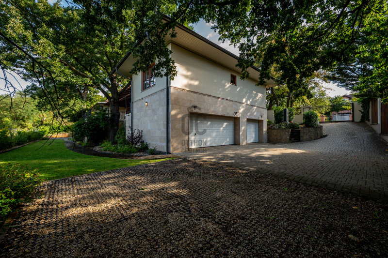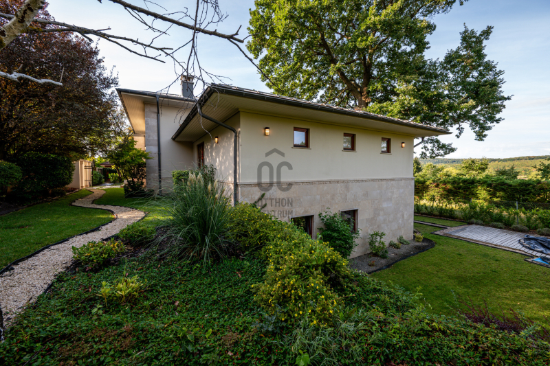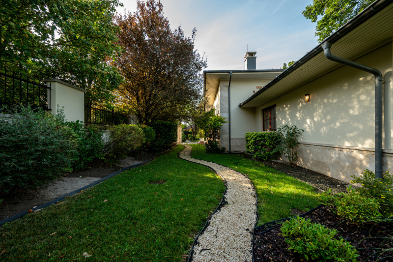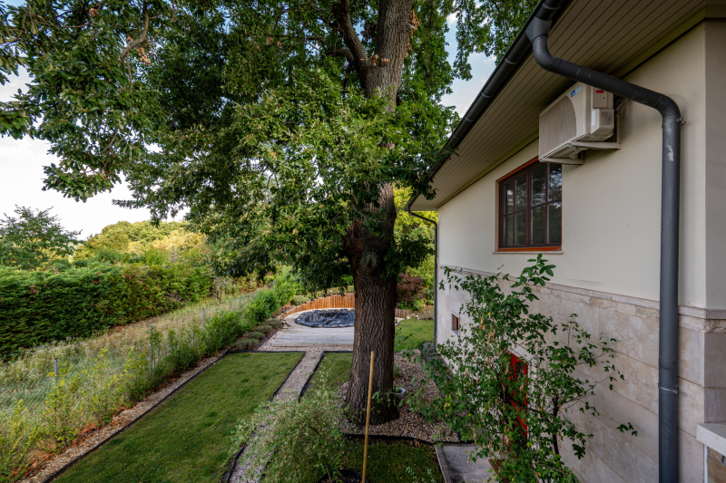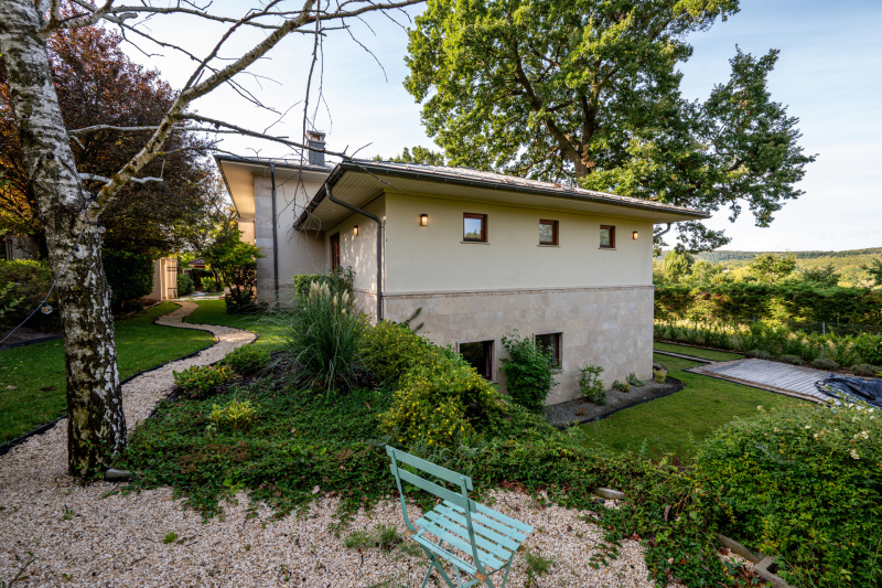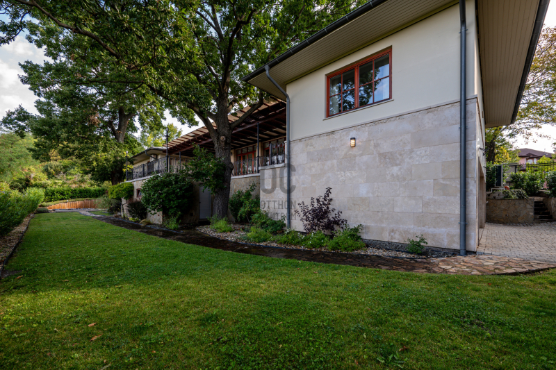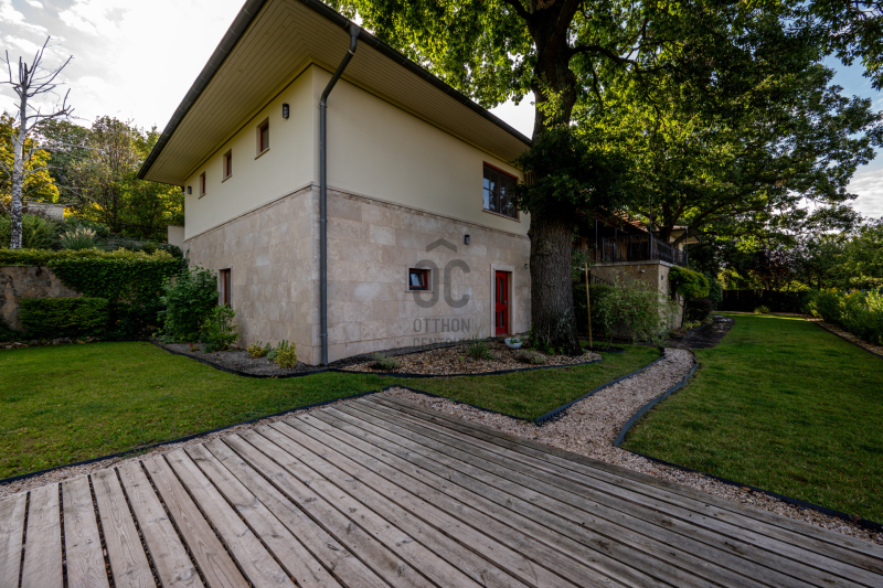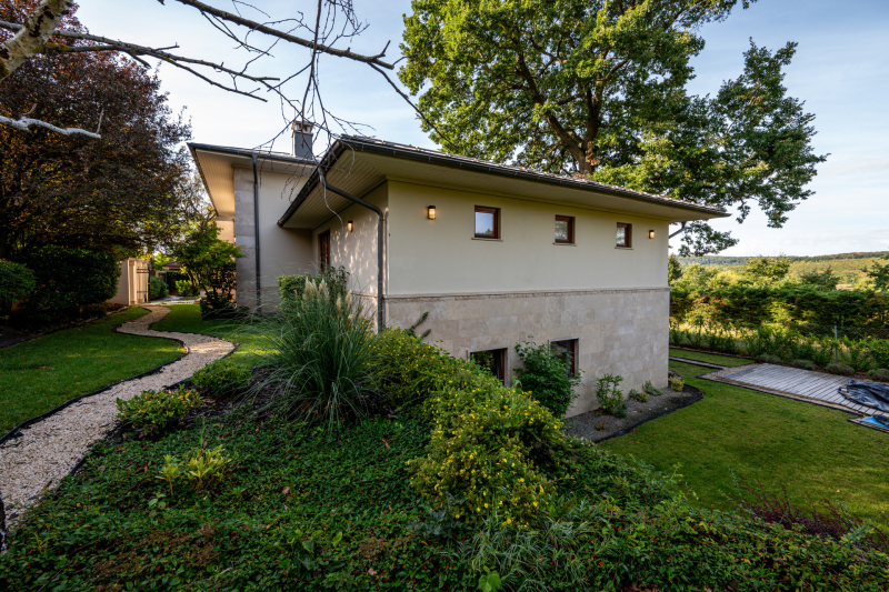 Az 1798 m²-es telken fekvő, 480 m² alapterületű, kétszintes villa 2002-ben épült, majd 2020-2023 közt teljeskörű felújításon esett át.