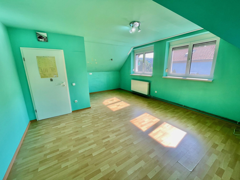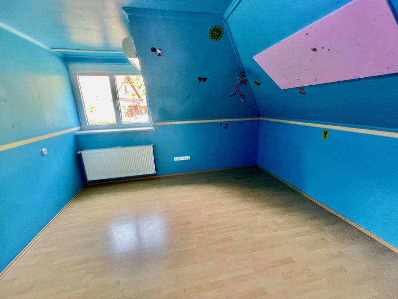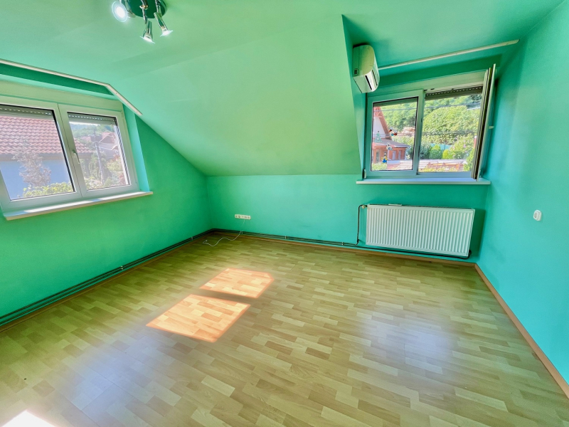A ház két perc sétára van az erdőtől, itt mindenki megtalálja a természet pihentető levegőjét. Több fűtési rendszer is kínál alternatívát.