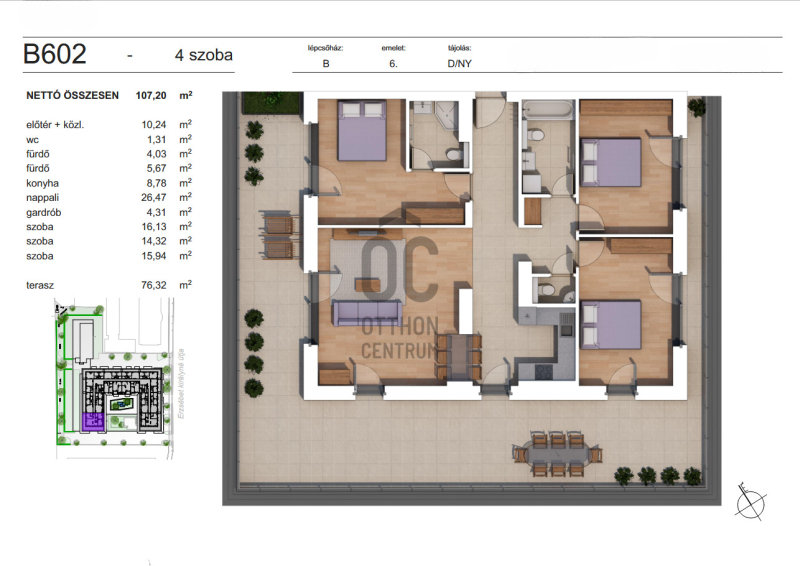 Nettó alapterület: 107,20 m2 + 76,32 m2 terasz.