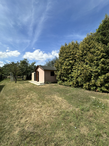 A telken termő gyümölcsfák, kisebb melléképületek, valamint egy szigetelt faház fedett terasszal található, ami 12 nm. Az utca felőli rész gondozott, füvesített, a hátsó terület jelenleg parlagon, de biogazdálkodásra kiválóan alkalmas. Buszmegálló a telektől 10 perc sétára található.
