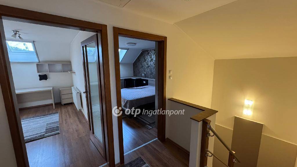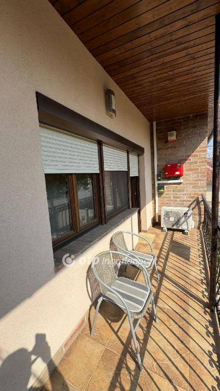 Gyulán, a Vár és a Várfürdő közvetlen közelében kínálok eladásra egy 126 nm-es téglából épült, háromszintes kiváló állapotú sorházat. Az ingatlan földszintjén elektromosan nyitható, zárt garázs, egy szoba, előszoba és egy WC található. Az első emeleten tágas, 25 nm-es nappali kapott helyet, amelyhez kényelmes terasz kapcsolódik. Itt található még a konyha, valamint külön fürdőszoba és WC is. A tetőtérben három hálószoba (két félszoba és egy nagyobb szoba), valamint fürdőszoba WC-vel szolgálja a kényelmet. A ház kívülről és a tető is hőszigetelt, emellett 2,5 kW-os napelemrendszer gondoskodik az energiatakarékosságról. A fűtésről többféle megoldás gondoskodik: gázkazán, vegyes tüzelésű kazán, valamint két hűtő-fűtő klíma. A modern kényelmet növeli a minden szinten kiépített központi porszívórendszer, az ablakok szúnyoghálóval ellátott és elektromos redőnnyel felszereltek. Ingatlanhoz tartozik igény szerint leválasztható közös udvar, amit egy fedett teraszról élvezhetünk. Az ház teljes bútorzattal és gépesített konyhával együtt eladó, így az új tulajdonos azonnal birtokba veheti. Igény esetén hitelügyintéző kollégánk tájékoztatja Önt a jelenleg elérhető legkedvezőbb feltételekről.
