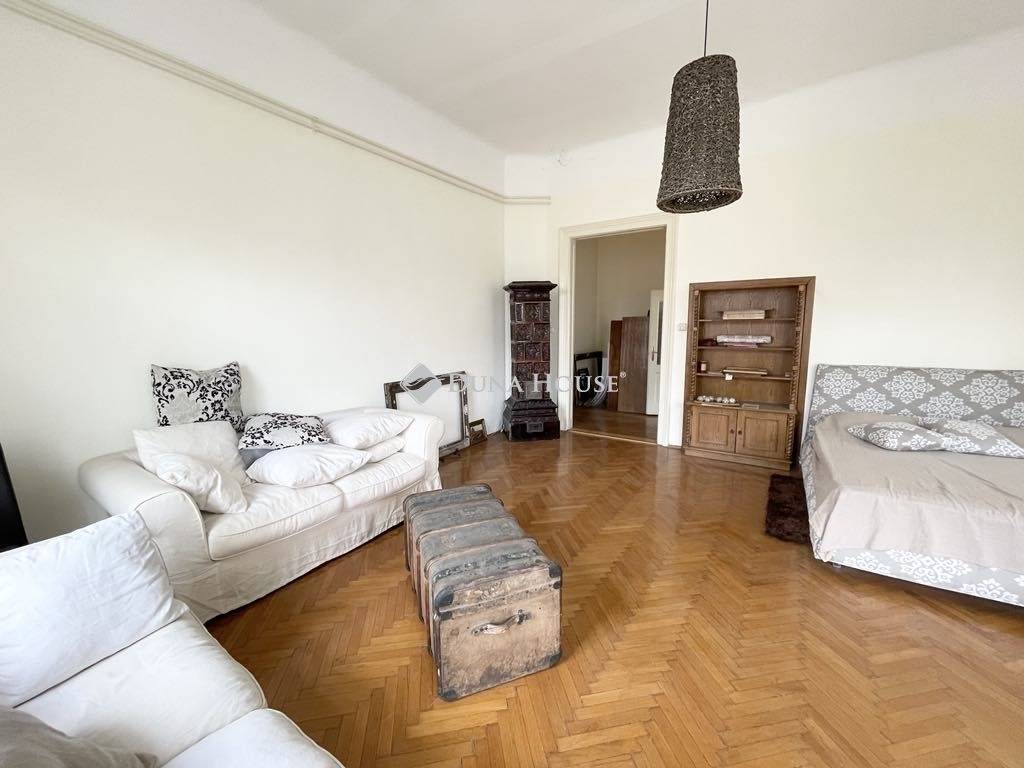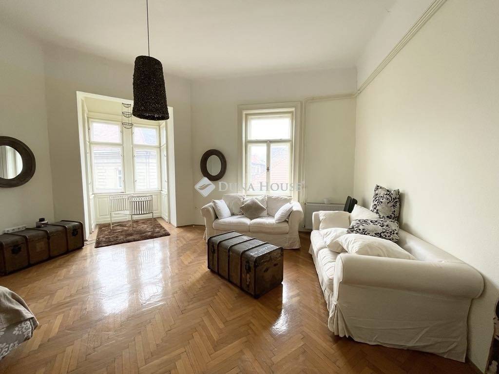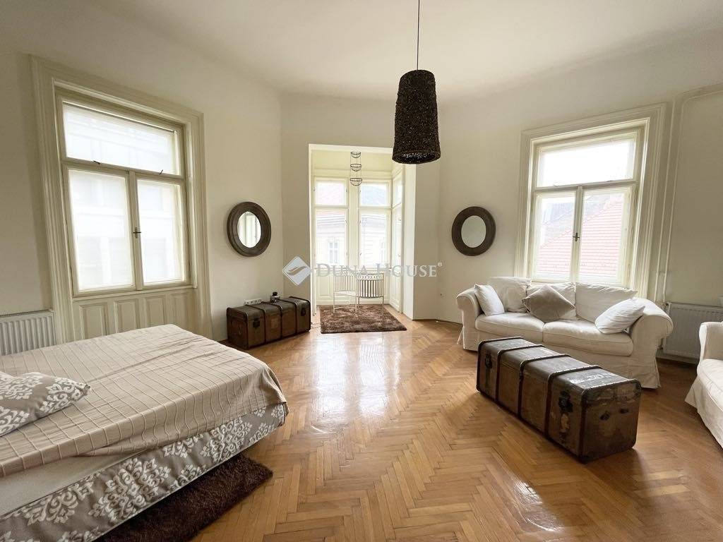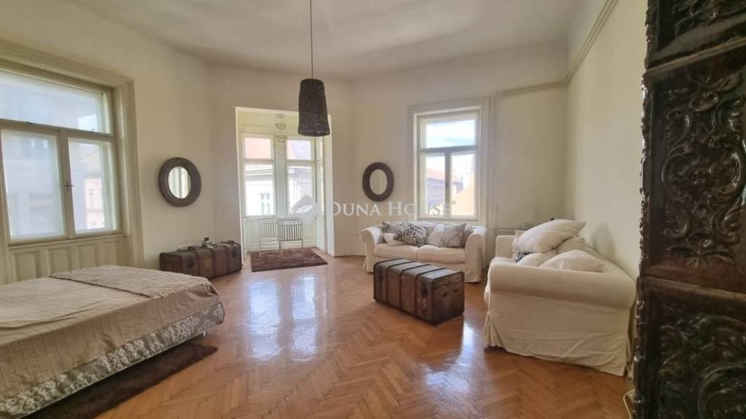 Eladó nagypolgári lakás az Oktogon közvetlen közelében az Eötvös utcában akár két lakássá is alakítható!A VI. kerület egyik legkedveltebb részén, az Eötvös utca és az Aradi utca sarkán, az Oktogon mellett, eladó egy különleges hangulatú, 170 m²-es, 4 szobás nagypolgári lakás egy szépen karbantartott, 1880-ban épült társasház 3. emeletén. Bár a házban nincs lift, az épület és a lakás hangulata mindenért kárpótol. Az ablakai az Eötvös utcára és az Aradi utcára is néznek.A lakás főbb jellemzői: 170 m² alapterület 4 szoba, nagy belmagasság (3,6 m), klasszikus polgári stílus Keleti fekvés reggeli napfénnyel árasztja el a helyiségeket 2 fürdőszoba + 1 külön WC Modern, ízléses konyha Könnyedén két lakássá alakítható, két lakásból lett kialakítva kiváló befektetés vagy többgenerációs otthon Saját tároló és beállóhely a ház udvarában igazi ritkaság a belvárosbanLokáció és környék:Az ingatlan a Nyugati tér, az Andrássy út és az Oktogon közvetlen közelében található. A környék elegáns, mégis élénk: kiváló éttermek, kávézók, színházak és üzletek sora várja a leendő tulajdonost. A Városliget is kényelmes sétatávolságra elérhető.Közlekedés:Karnyújtásnyira a 4-6-os villamos, az M1 metró (földalatti), több trolibusz és buszjárat a város bármely pontja könnyedén és gyorsan elérhető.Ez az ingatlan valódi különlegesség a belváros szívében tágas tereivel, kiváló elhelyezkedésével és átalakíthatóságával ideális otthon és befektetés egyben.