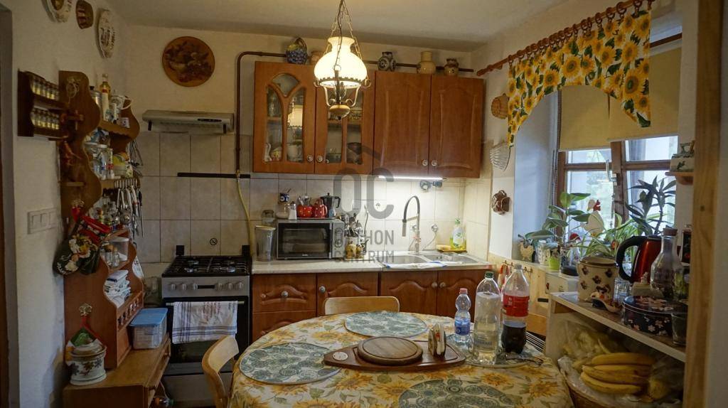 Szépen karban tartott autentikus ház két szobát, nappalit, étkezőt, konyhát és fürdőszobát tartalmaz.