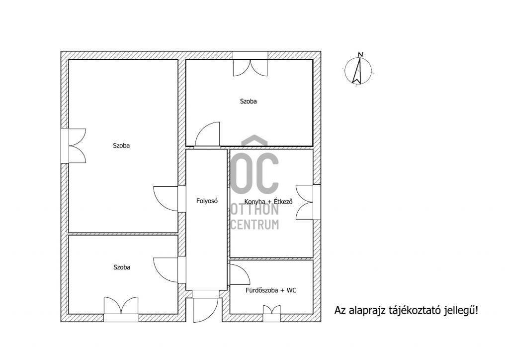 Az ingatlan vegyes falazatú, hullámpalával fedett. Alapterülete 82 nm, helyiségei a közlekedőből nyílnak: 3 szoba, egy konyha étkezővel, és egy fürdőszoba benne lévő WC-vel. Víz, villany és csatorna be van vezetve, a gáz az utcán található. A ház felújítandó, így kiváló lehetőséget nyújt mindazok számára, akik saját elképzeléseik szerint szeretnének otthont kialakítani. A telek akár bővítésre, akár kert kialakítására is kiválóan alkalmas.