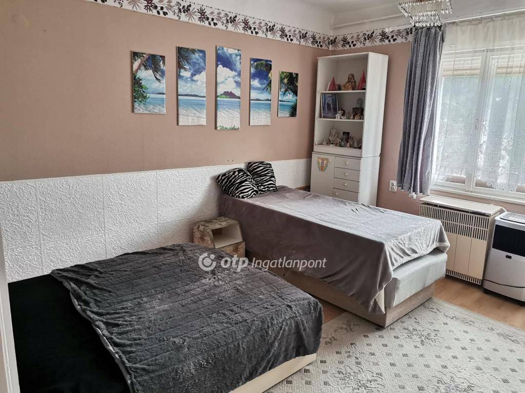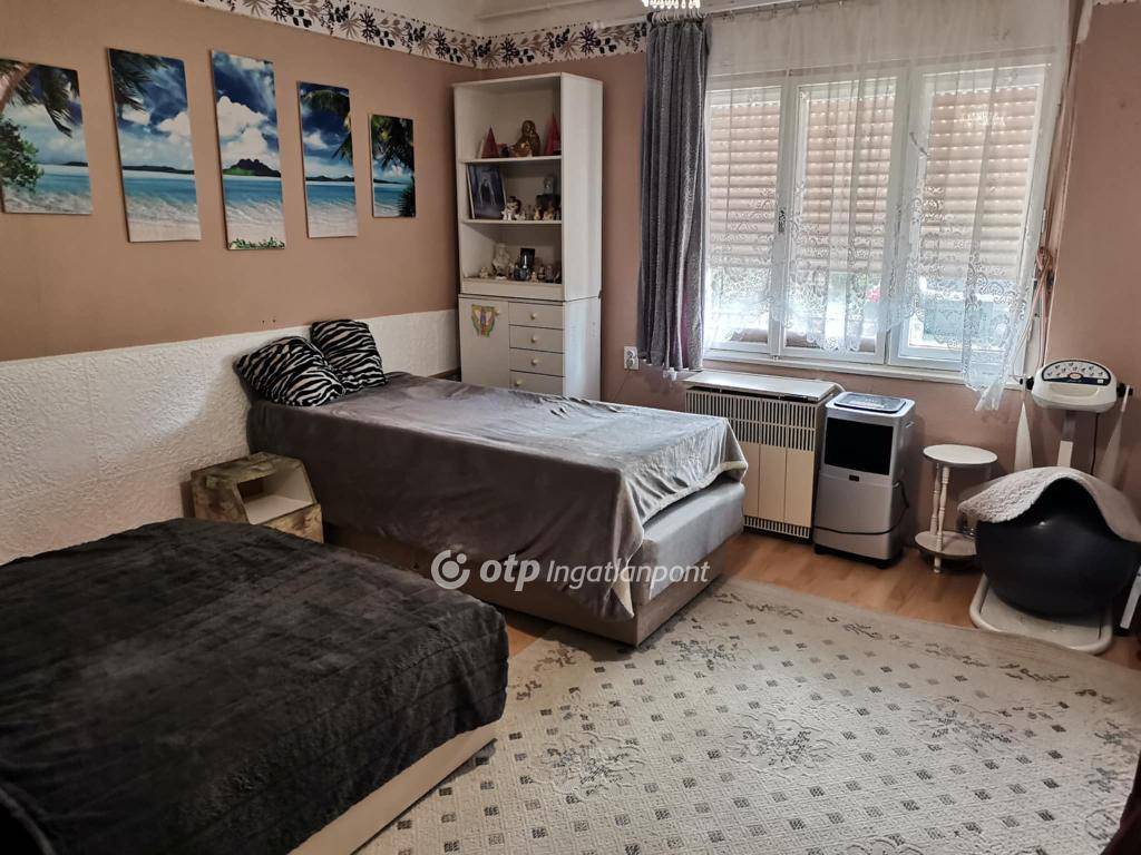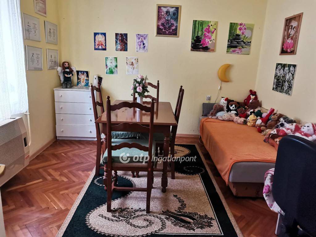 A konyha, fürdőszoba járólappal borított, míg a többi helységben laminált parketta a burkolat. A fa nyílászárók jó állapotúak.