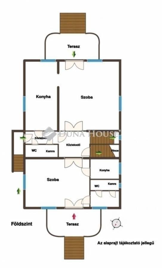 Földszint: a három bejárattal rendelkező tágas és levegős lakószint a ház szívét képezi. A két nagyméretű teraszos nappali, világos étkezőkonyha és a még ezen a szinten elhelyezkedő helyiségek a mindennapi családi élet harmóniáját biztosítja a ház lakóinak. Befektetők számára ez a szint megfelel üzlethelyiség, vagy étterem létesítésére