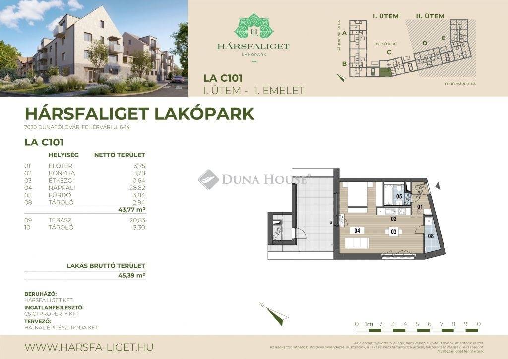 Az I. ütemben 46 és 87 m² közötti alapterületű, újépítésű lakások érhetők el, zöld környezetben, igény szerint garázzsal, parkolóval kiegészítve.