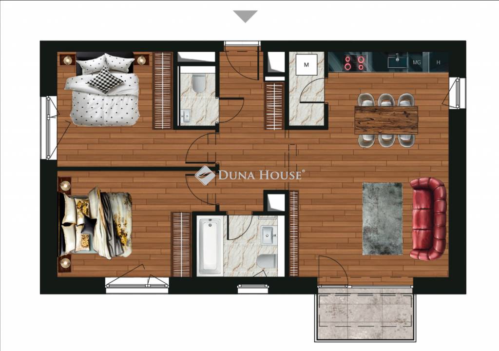 A külön nyíló szobák kényelmes, élhető tereket biztosítanak, a világos nappali pedig a közös pillanatok tökéletes helyszíne lehet. A zárt belső udvar nyugalmat és biztonságot nyújt, míg a közösségi tér lehetőséget teremt a kikapcsolódásra vagy egy barátságos beszélgetésre a szomszédokkal. Egy otthon, ahol a kényelem, a nyugalom és a jó elrendezés természetes.