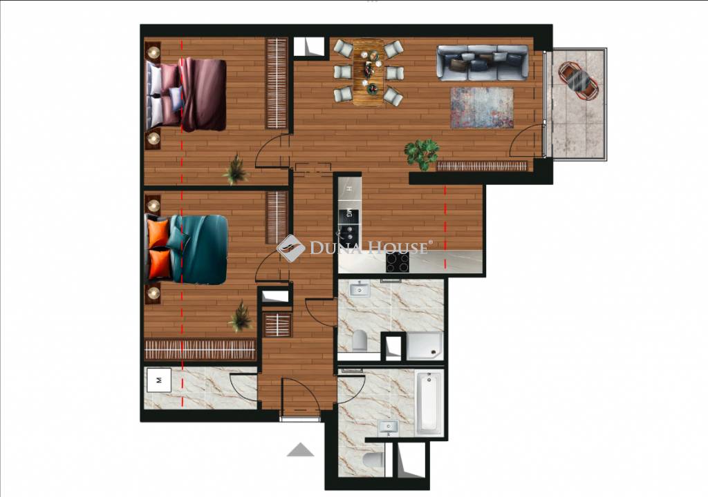 Ez a lakás bőséges teret biztosít nagyobb családoknak, home office-ban dolgozóknak vagy kreatív hobbik kedvelőinek. Külön hálószobák, dolgozószoba és vendégszoba egyben, így mindenki megtalálja a saját helyét. Ideális választás, ha fontos a kényelem, a funkcionalitás és a sokoldalúság!