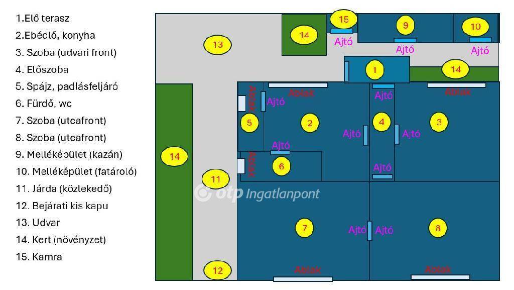Az udvarban melléképület is található, amely tárolásra kiválóan alkalmas. Parkolási lehetőség közvetlenül a ház előtt adott.