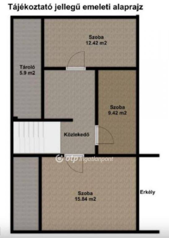 A két szintes ingatlan alsó szintjén NAPPALI, KONYHA, kamra, valamint fürdőszoba és külön WC található. A konyhából közvetlen kijárat nyílik egy CSENDES hátsó teraszra, ami a mindennapi pihenést szolgálja. A felső szinten jelenleg három szoba került kialakításra, ebből kettő saját ERKÉLLYEL rendelkezik, az egyik szoba könnyen átalakítható további FÜRDŐVÉ a fentiek kényelméért.