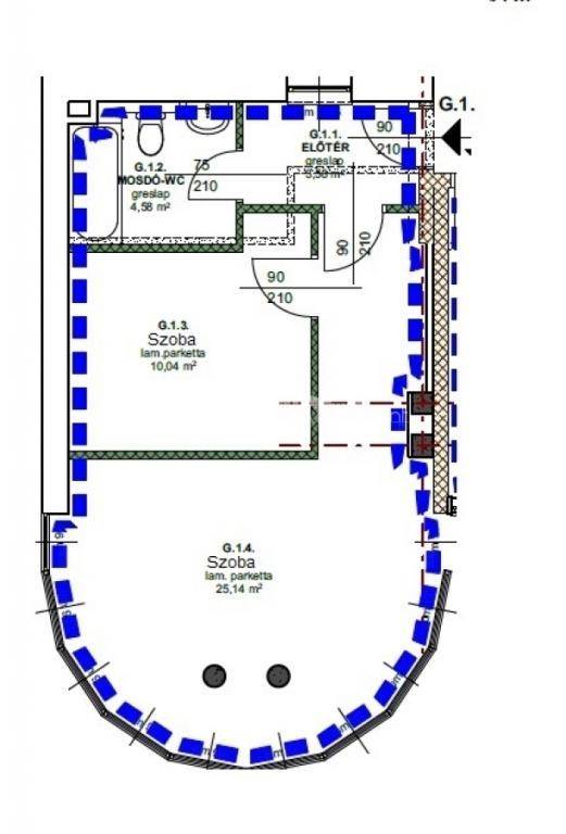 - fürdő, vizesblokk: terv szerinti elhelyezéssel
