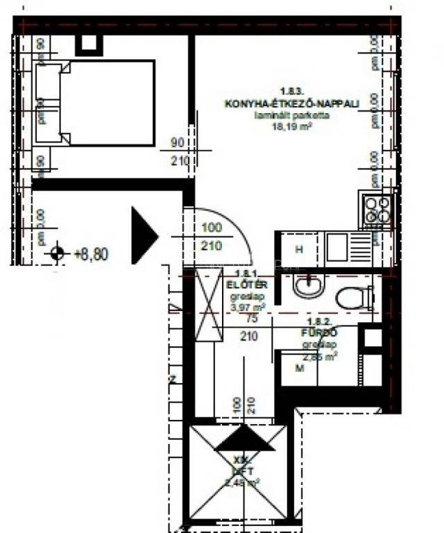 A hirdetésben szereplő ingatlan az első emeleten található, saját lift belépéssel, 25 m2-es, nappali + hálóval, Iseum panorámával, déli fekvésű.