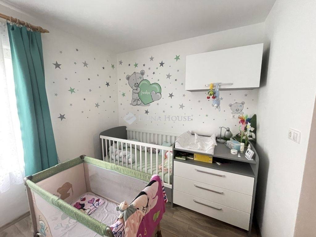A napsütötte, szépen gondozott telek remek helyet kínál a kikapcsolódáshoz, pihenéshez: kerti sütő, gyerekjátékok, kerti pad mind-mind kényelmesen elfér, de fedett autóbeálló is kialakításra került.