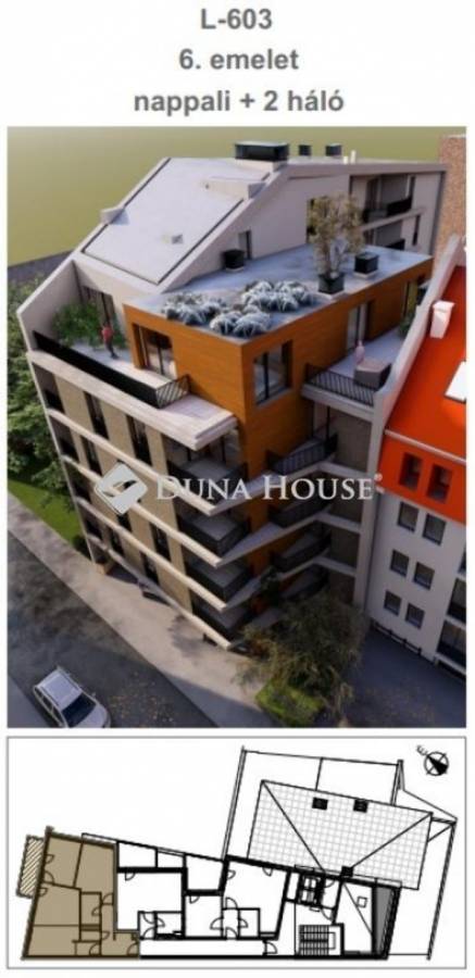 2026-os átadású, 36 lakásos projekt legnagyobb, legfelső szinti, 3 szobás lakása.