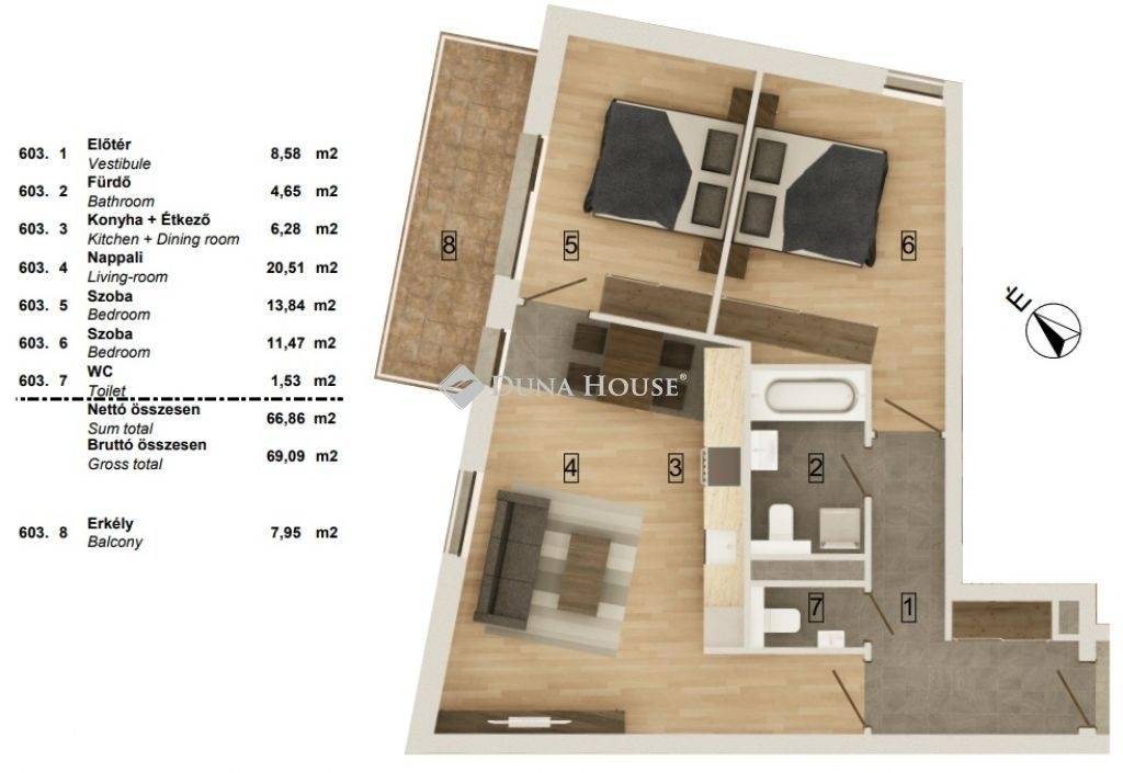 66,86 m2 hasznos lakóterület + 7,96 m2 erkély, mindössze 94,99 MFt-ért!