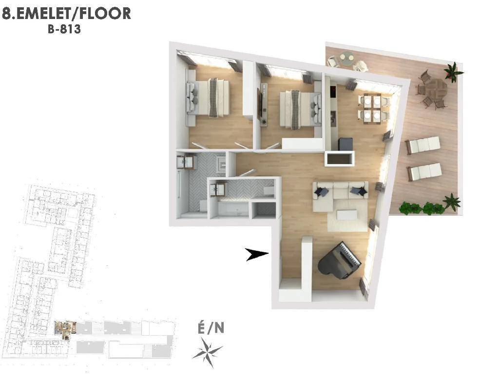 Budapest rendkívül felkapott és folyamatosan fejlődő környéken a XIII kerületben, közel a Dunához, kiemelkedő színvonalú MODERN, ELEGÁNS és ENERGIAHATÉKONY új lakópark kerül megépítésre. A 8. emeletes épület komplexum 3 parkoló szinttel, tárolókkal és kerékpároknak kijelölt helyekkel fog rendelkezni. A 377 lakásos társasházban ideális lakásmixet kínálunk mindenki számára. A lakások méretei 30m2-135m2-ig terjednek. A legtöbb lakáshoz nagy méretű erkély és terasz tartozik. A földszinti parkoló fölött tetőkert létesül, melynek egy része közösségi kert, továbbá számos kényelmi szolgáltatás is lesz biztosítva: zöld udvar, játszótér, fitnesz terem, szauna állnak majd rendelkezésre, ráadásul mindez a Duna-part közelében. A fűtésről és hűtésről gondoskodó levegő/víz hőszivattyús rendszer AA+ besorolással rendelkezik. A lakásokban mennyezetfűtés- hűtés készül, illetve a fürdőszobákban opcionális padlófűtés létesíthető. A nyári melegre gondolva a hűtés olyan technikával lesz megoldva, hogy a levegőt ne szárítsa. A lakóépület anyagösszetétele is kiemelkedő színvonalat tükröz. Az építés során kizárólag minőségi anyagok kerülnek felhasználásra, hogy tartós és időtálló otthonokat teremtsenek. A 8 emeletes épület kiválóan illeszkedik a városképbe, valamint ideális közlekedési infrastruktúrával rendelkezik. Az elhelyezkedése kiváló, hiszen a Váci úti irodafolyosó szomszédságában található, így könnyedén elérhető a város központja és a fontosabb üzleti negyedek.