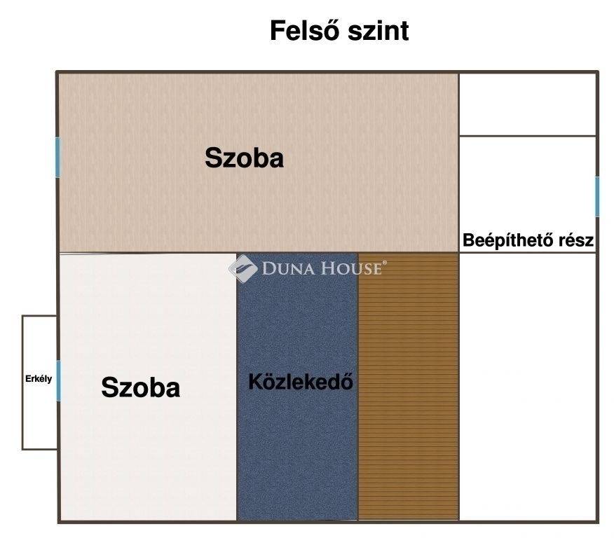A felső szinten egy nagyméretű szoba és egy kisebb szoba van erkéllyel, a TV toronyra néző kilátással.